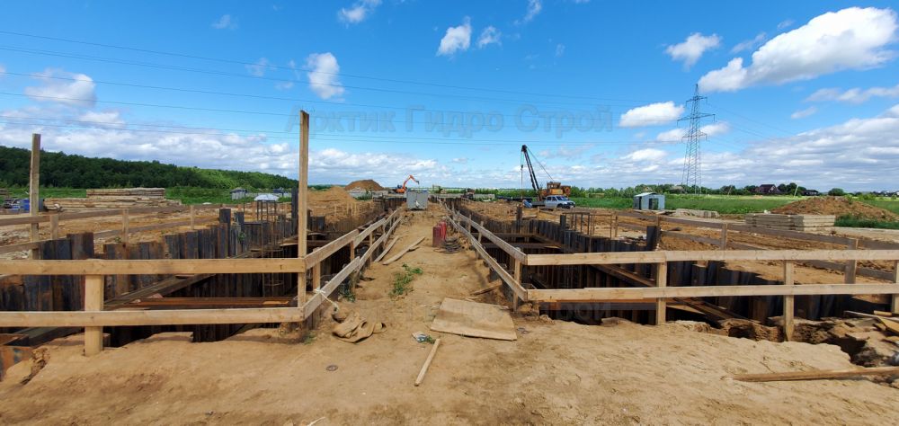 Шпунтовое ограждение котлована из шпунта Ларсена с распорами, выполненное специалистами «АрктикГидроСтрой»