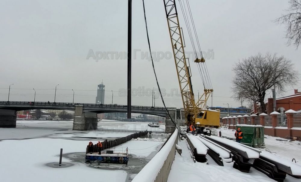 Вибропогружение шпунта Л5-УМ при строительстве искусственного сооружения в русле реки Москвы