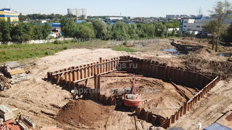 Наши специалисты провели комплексные работы по устройству шпунтового ограждения котлована при строительстве многоэтажного жилого дома с подземной автостоянкой и встроенными помещениями общественного назначения